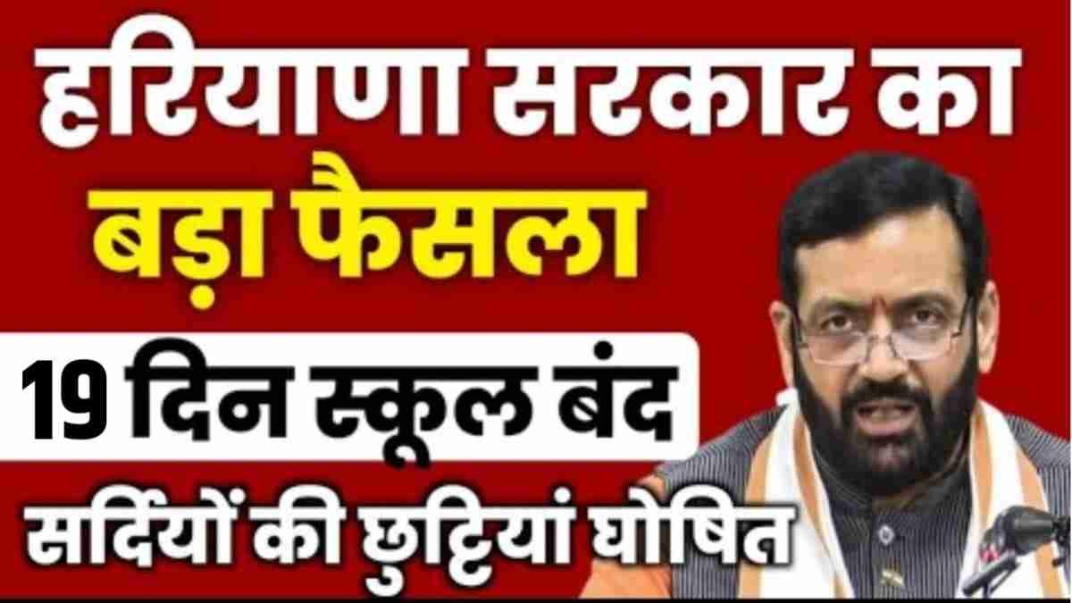 हरियाणा में विंटर वेकेशन का आगाज हो चुका है। इस बार पिछले साल के मुकाबले ज्यादा दिनों की शीतकालीन अवकाश घोषित किया गया है। राज्य सरकार की ओर से हरियाणा में करके की ठंड और शीतलहर की मार की वजह से बच्चों के स्वास्थ्य पर असर न पड़े इस कारण से हरियाणा में लगभग 19 दिनों की छुट्टी की घोषणा कर दी गई है। इस घोषणा के अनुसार अब हरियाणा में सभी सरकारी प्राइवेट स्कूल प्राइवेट कोचिंग संस्थान सभी 16 जनवरी 2025 तक बंद रखने के आदेश दिए गए हैं। इस आदेश का उल्लंघन करने वाले स्कूलों पर कड़ी से कड़ी कार्रवाई करने का भी आदेश दिया गया है। आपको बता दे की 17 जनवरी 2026 से फिर से सभी स्कूलों को खोला जाएगा और नियमित रूप से स्कूल चलेंगे।