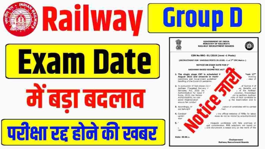 RRB Group D परीक्षा तिथि के बदलाव को लेकर ऑफिशल नोटिस जारी